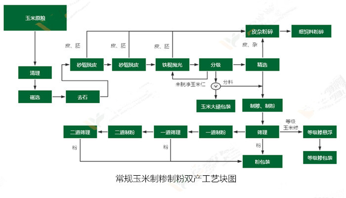 2、玉米干法成套加工工藝,物料加工過程無需接觸水,加工更衛(wèi)生,更簡潔、更省力;